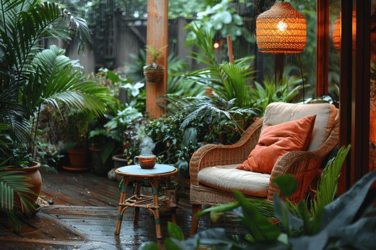Allá terraza puede convertirse en un verdadero remanso de paz incluso bajo una lluvia torrencial. El truco está en crear un ambiente cálido a pesar del mal tiempo. Utilizando materiales adecuados y elementos decorativos bien pensados, es totalmente posible disfrutar de este espacio exterior en cualquier circunstancia.