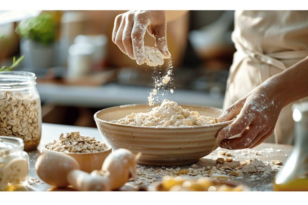 Em seguida, adicione o aveia e misture bem. A aveia adicionará uma textura levemente granulada à máscara, proporcionando uma esfoliação suave.